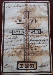 Dibujo de época de una jaculatoria para librarse de la peste. Archivo del autor.