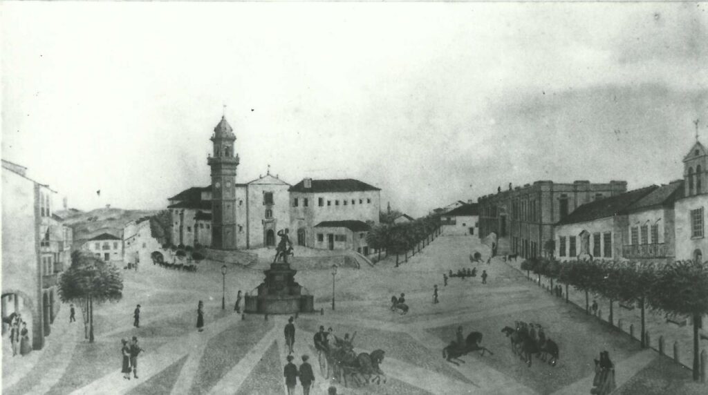La Plaza del Campo y el convento de Sto. Domingo en 1867, dibujo de don Manuel García Failde, foto del archivo del autor.