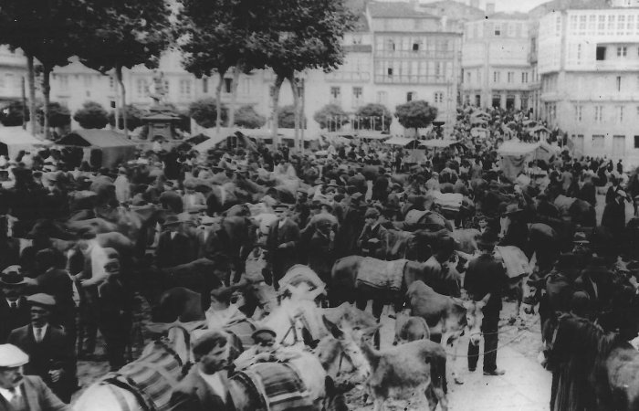 Transcurridos catorce años se construyen las primeras aceras de cantería «…Que permitiesen un acceso más noble a los edificios existentes en el Campo de la Feria…», al año siguiente el 11 de mayo de 1846 se encarga el proyecto para enguijarrar la totalidad del Campo, y a partir de entonces se inician las gestiones para buscar otro lugar para la celebración de las ferias, de manera que paulatinamente se desplazan los distintos ramos hacia otros puntos como «La Feria Nueva» en terrenos adquiridos por la municipalidad el 7 de agosto de 1864 (remitimos a nuestro trabajo Las Ferias y Mercados de Betanzos, Untia I, 17 mayo 1985, págs 17 a 30; y a nuestra obra Morfología Urbana de Betanzos de los Caballeros- Extramuros. Aproximación Documental, ayuntamiento de Betanzos, Gadis y Abanca 2015), de manera que el antiguo Campo de la Feria se convirtió en una hermosa plaza presidida por la fuente de Diana Cazadora y la estatua de los Hermanos García Naveira a quienes tan merecidamente se les ha dedicado para formar parte de su nomenclátor.